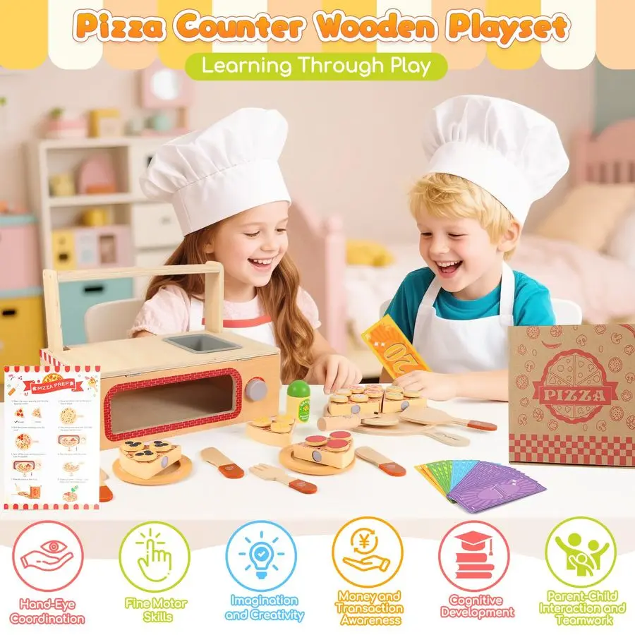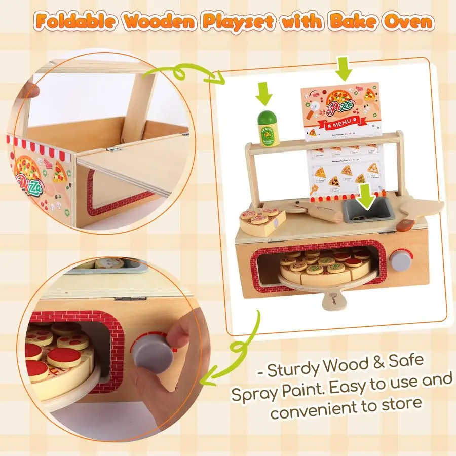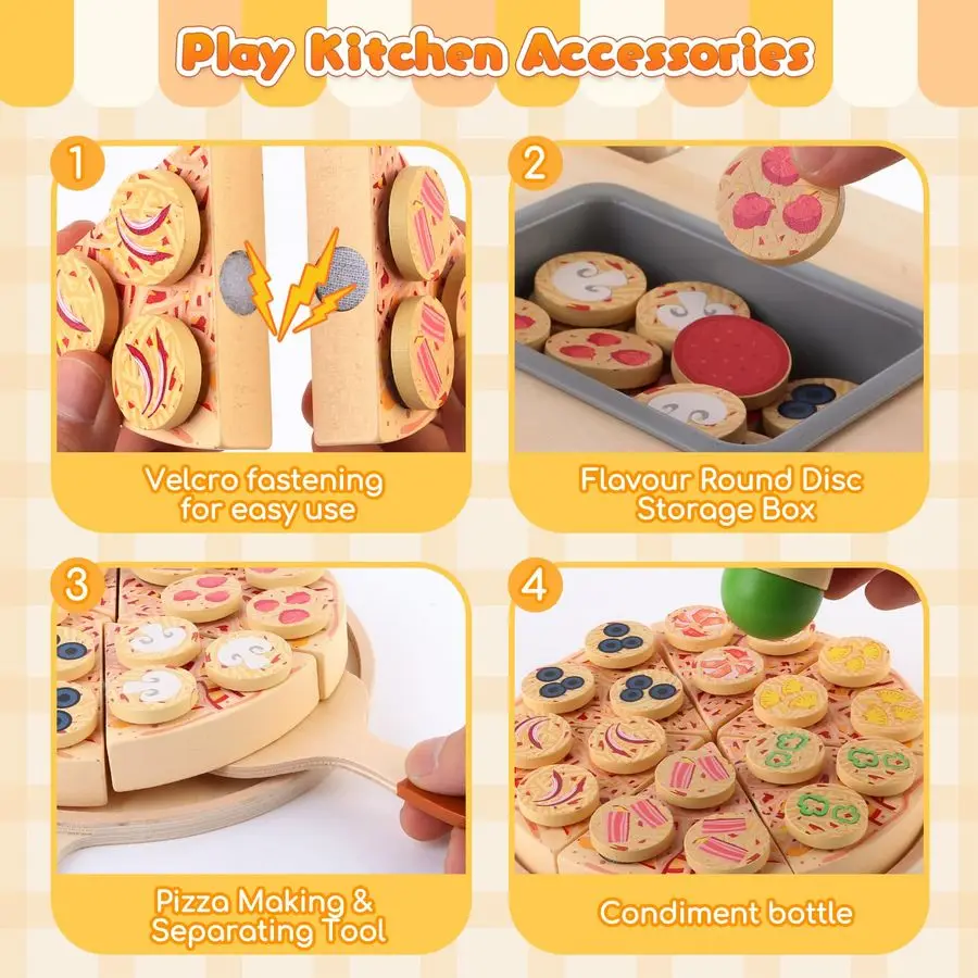 68 PCS Wooden Pizza Toy Set for Kids